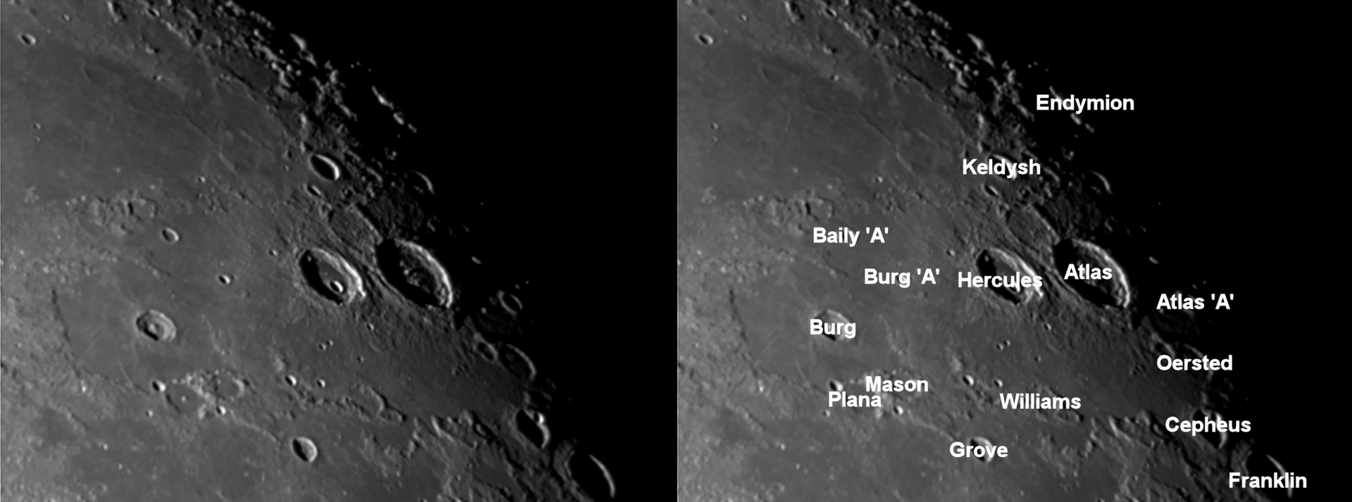 The craters of Hercules and Atlas with surrounding features taken in the early morning of Dec 2nd 2012 with the SkyMax 180 and DBK web cam.