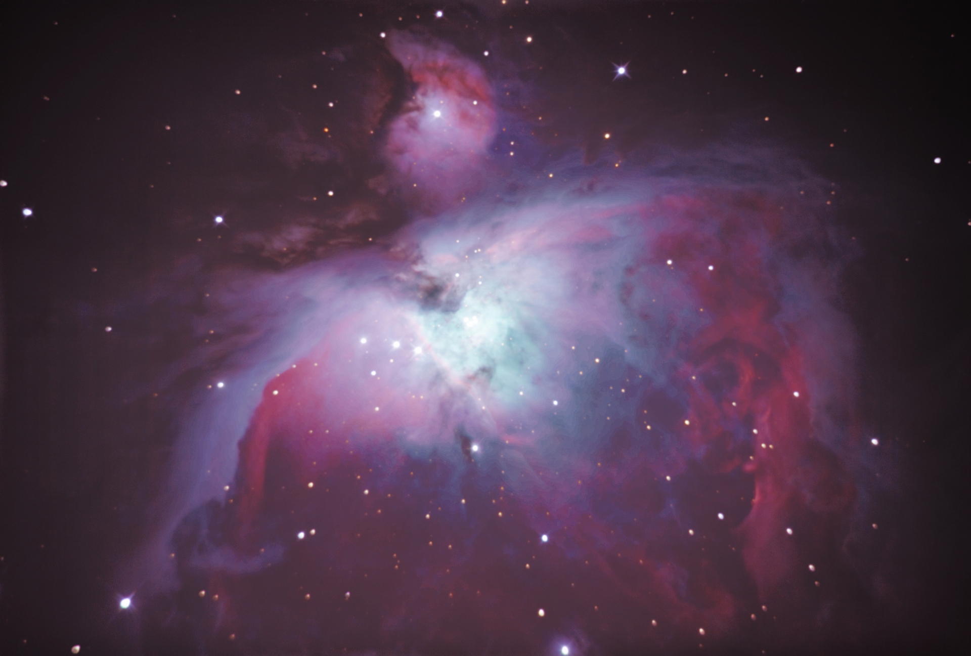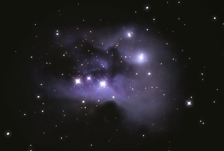The Running Man nebula lies above the main Orion Nebula M42/43 complex and is a reflection nebula where the blue light of stars is reflecting off a large dust cloud. This image is a stack of 124 x 10 sec exposures at ISO 400 using the StarGate 500P Dobsonian and the Canon 50D DSLR taken on December 9th 2018.