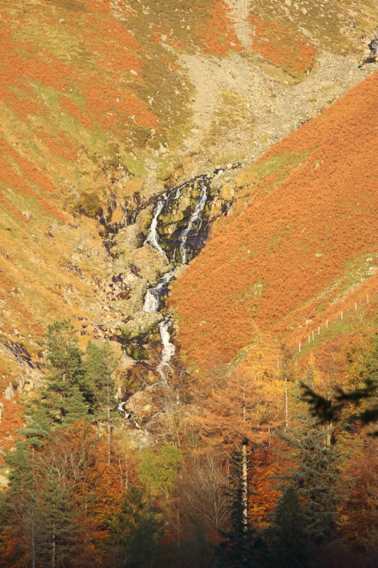 At the risk of boring everyone with pictures from our Oct-Nov holiday in the Lake District in 2021, here is a view of a waterfall spotted across Lake Thirlmere from a car park near to Dobgill Bridge. It was taken with my 100-400mm lens and Canon 50D DSLR with the lens set at 400mm. The waterfall lies above a place called Straining Well on the OS map and the late afternoon sun really brought out the autumn colours!